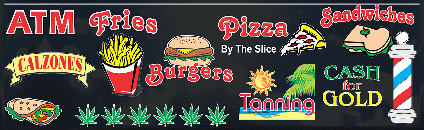 In addition to neon signs, we offer many other products including neon clocks, window border tubing, static cling window signs, sidewalk signs, vinyl banners, light boxes, message boards, marker boards, and various neon sculptures. We also supply neon accessories like transformers and GTO wiring.